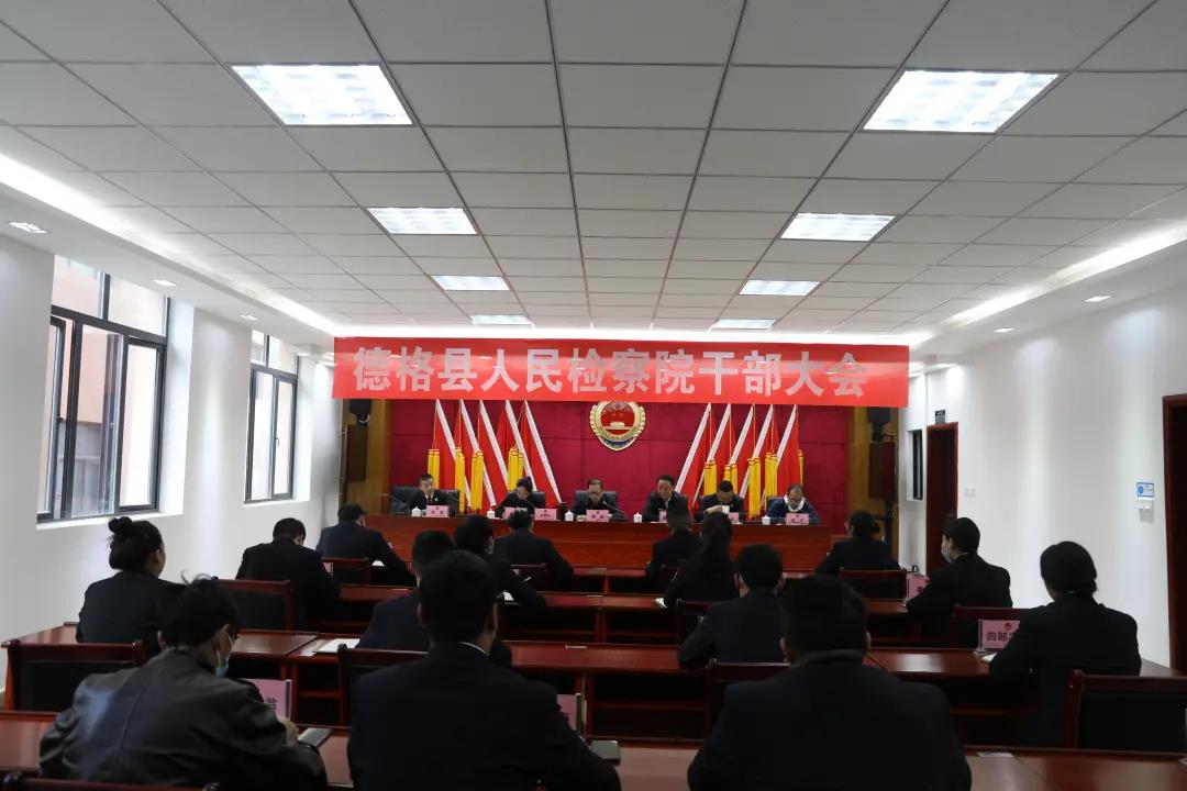 10月20日上午,德格县人民检察院召开干部大会,宣布主要领导任职决定。州检察院党组成员、副检察长黎军,德格县委常委、县政法委书记泽仁扎西,县委组织部副部长达瓦措出席会议。会议由达瓦措副部长主持,德格县检察院班子成员及全体干警参加会议。